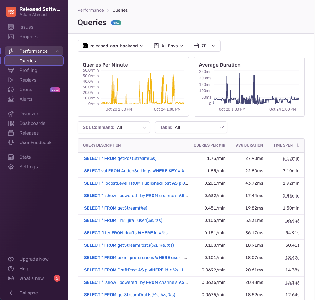 As Released.so grew, improving the performance of their application became a higher priority. With Sentry Performance the team has caught a number of performance regressions across their stack.