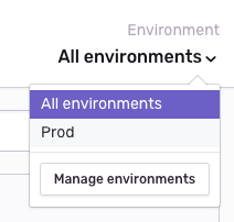 Each project may have a dev, staging, and production environment associated with it. Sentry provides a top-level filter for each environment within a project.