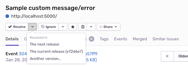 When you associate commits with errors in Sentry, you unlock the ability to identify regressions, decrease time to error resolution by predicting the commit causing the issue and who's likely responsible, and resolve issues using the issue number in your commit message.